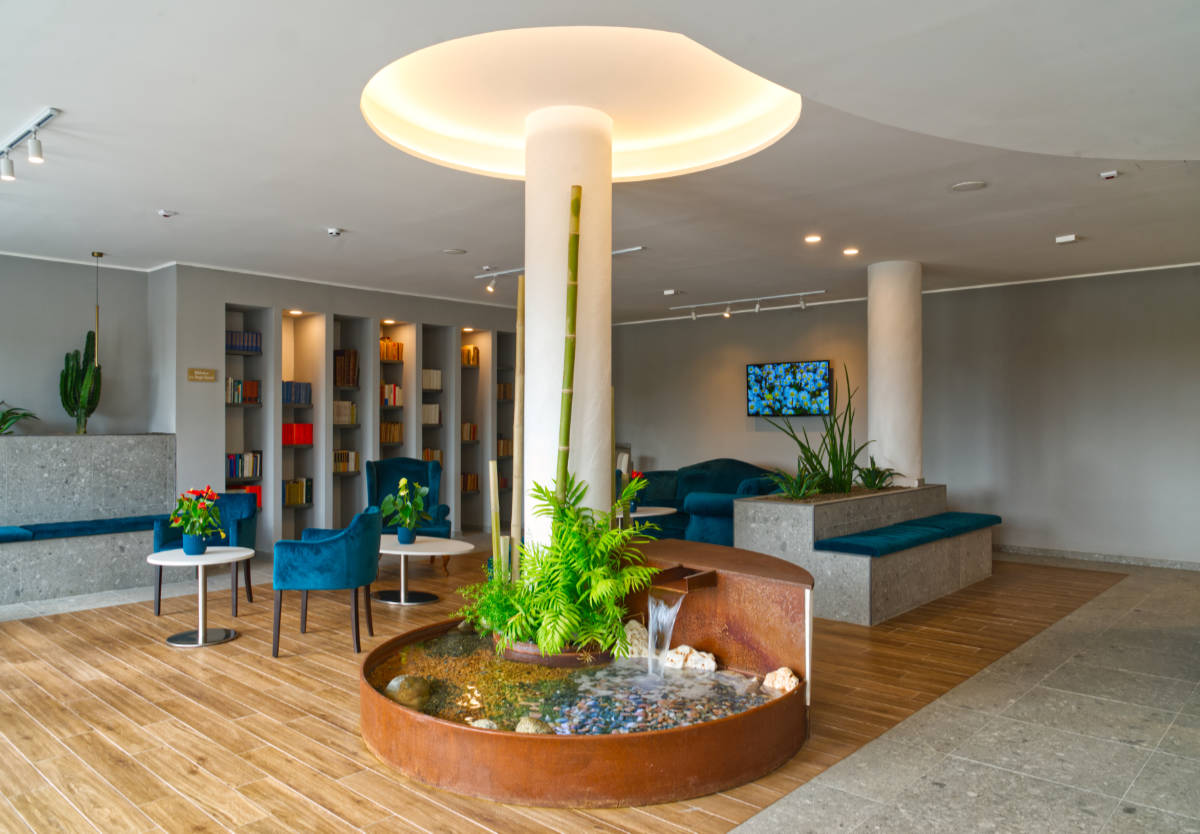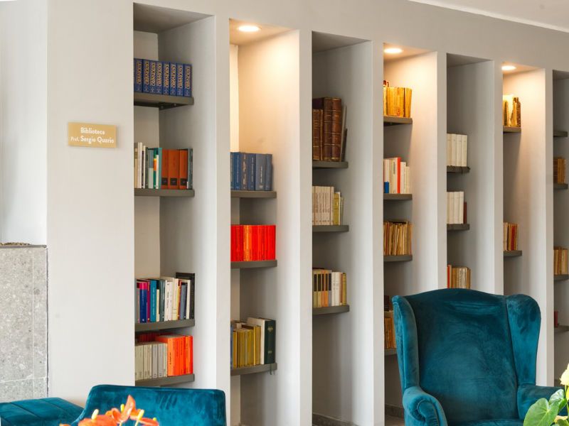 La Residenza Paradiso si presenta all’Ospite e al Visitatore con una elegante Hall, curata nei dettagli e dallo stile raffinato e moderno, impreziosita da una prestigiosa libreria di 858 volumi donati dal Prof. Sergio Quario, offrendo la possibilità di immergersi nello spirito letterario.